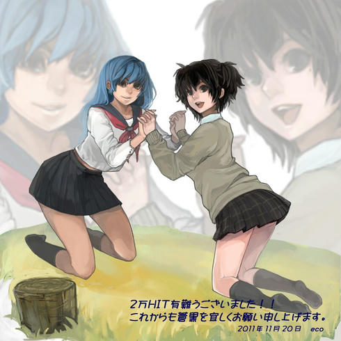 前回、キリリクイラストで描かせて頂いた、蒼子ちゃんと黒子ちゃんecoさんVer.です。