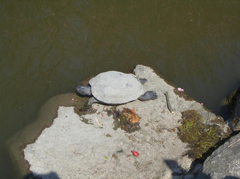 頑張って柵から手を出して、カメと五重塔を入れてみました。