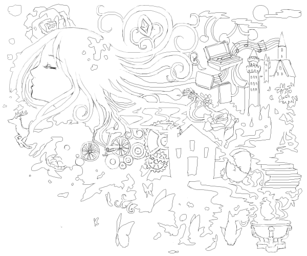 線画コン2枚目。これが例の勢いだけで描いたもの。