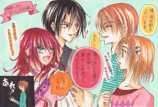 右側:「暁のヨナ」 ヨナ&ハク 左側:「NGライフ」 敬大&美依