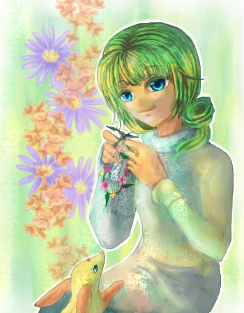 ちょび。さんの誕生花を調べたら、「シオン」や「金木犀」が出てきたので、背景に描いてみました。