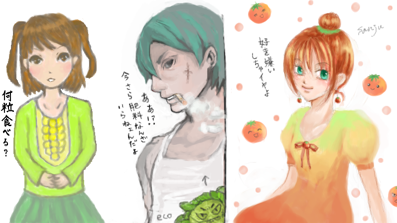 最初お喋りしていて、なぜか途中から野菜の話になり、「野菜擬人化描きたい」とボソッと呟いたら、お題がそれに決まりました(笑)