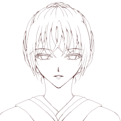 某CHOBI丸さん(笑)に頼まれ、調子に乗って年賀イラストに描いた女の人の正面を描こうとして別人になってしまったの図。