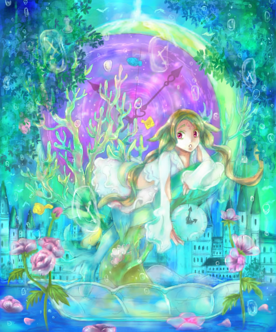塗り絵をする時、「線画の世界観+自分らしい世界観(モチーフ)」を意識しているので、それを考えた時に思いついたのが「時計」でした。