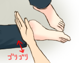 親指で刺激するか、手刀でそこをゴリゴリやると、効く人はとても効きます。