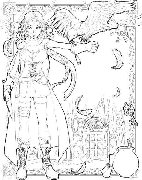 線画コン1枚目。ファンタジーと鷹匠が描きたかったので。