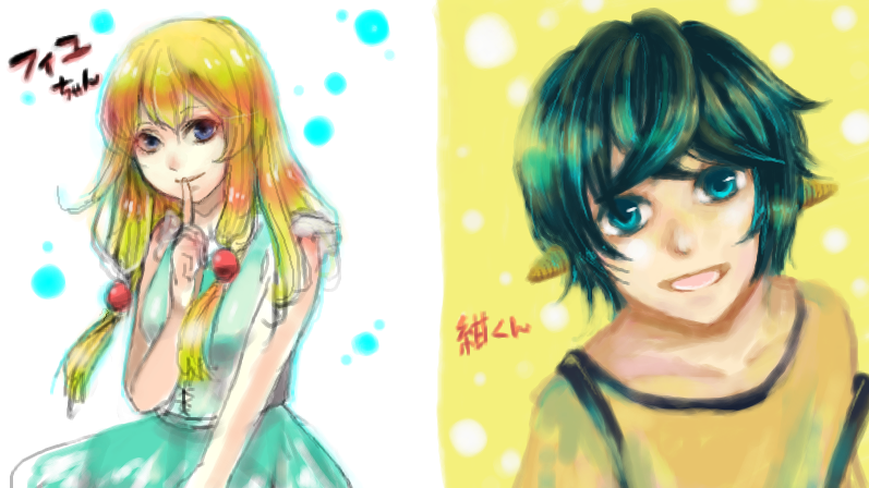オリジトークが一段落したあと、お互いオリキャラ描きたい欲がむくむく沸き、描き合いっこすることになりました。