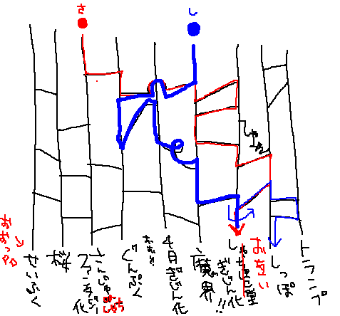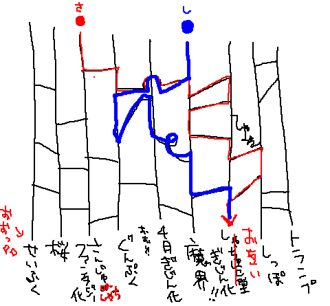 お喋りしたあとアミダくじ。最初に「しゃちほこ堂擬人化」って書いたら見事に「お互い擬人化」と訂正されました(笑)