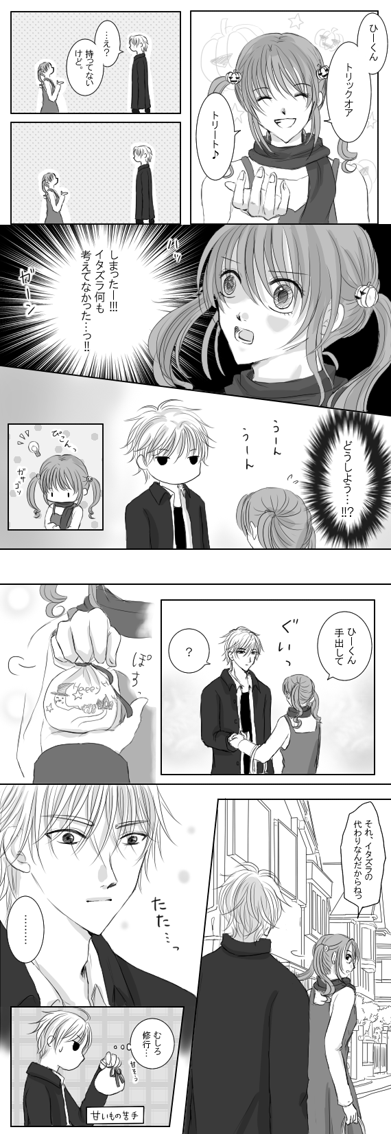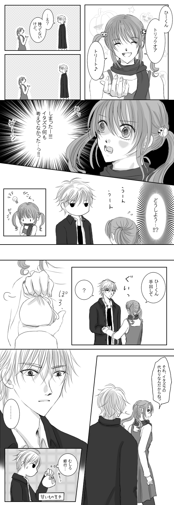 ひびひなハロウィン滑り込み!><2Pラクガキ漫画。