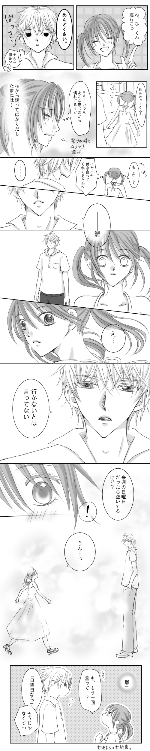 「蝉が鳴き始めましたね、夏ですね。漫画が詰まったので気晴らしに来ました。話の展開が思い浮かばないのが致命的です。塗りコンも参加したいけどどうしても漫画を優先しちゃってうんぬんかんぬん」です(笑)