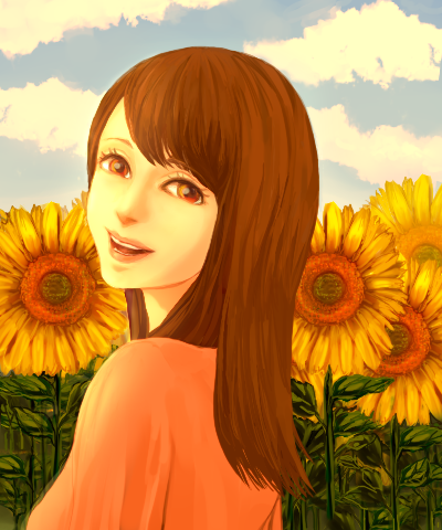 じっくり見ると、うっすらかかるオレンジ色や背景のヒマワリなど凝っていて綺麗で///