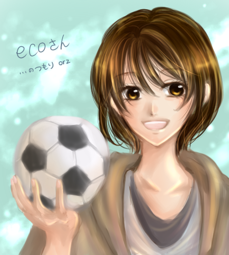 私のecoさんのイメージは、少し背が低くて、おちゃめで可愛らしくて、サッパリしたイメージなんですよね。絵では表現しきれませんでしたが、サッカーボールだけなら!ecoさんっぽさが出ているんじゃないでしょうか!