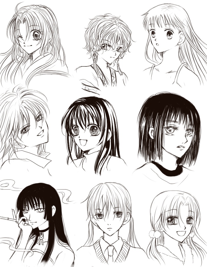 こうやって参考にしながら描くと、目と鼻の位置とか輪郭の描き方、髪の毛、パーツ、それぞれ違っていて面白かったです。
