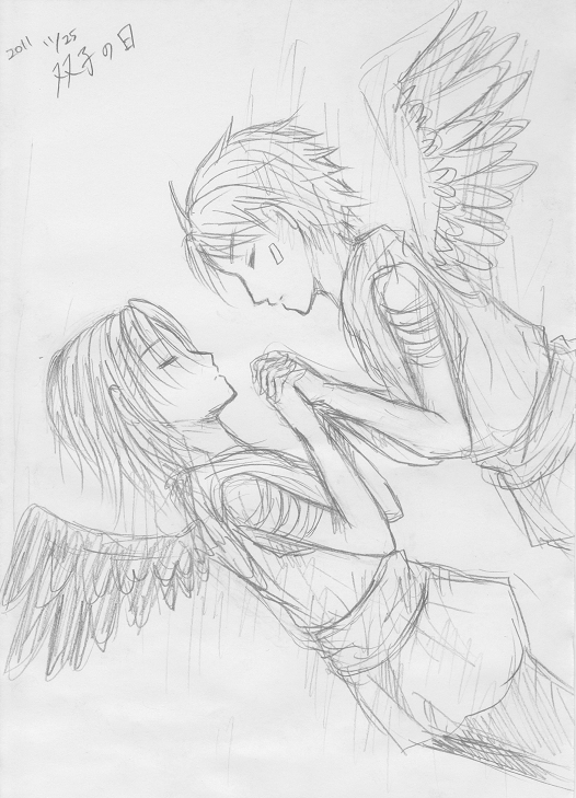 双子をちょっとザカザカ描いてみて、描き直したいと思っていたら時間が過ぎていました。