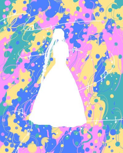 ちなみにツイッターで、私のイメージカラーを聞いたときに、(まとめると)「青、緑、青緑、黄緑、ビタミンカラー(オレンジ等)、桜色、辛子色、ローズピンク」が挙がったので、その色を使って絵を描いてみました。